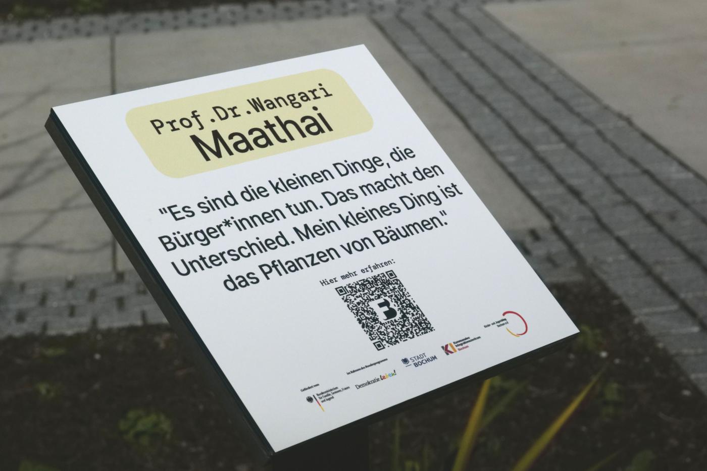 1977 gründete sie das Green Belt Movement, eine NGO die sich für Umweltschutz und die Entwicklung sozialer Gemeinschaft einsetzt.