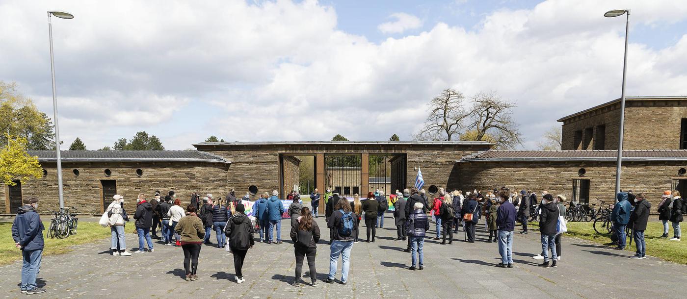 In consideration of the Shabbat customs of Jewish citizens, the traditional commemorative walk for today’s Liberation Day took place yesterday. More than 100 participants accepted the invitation from Bündnis gegen Rechts and Kinder- und Jugendring to visit the Fiedhof on Freigrafendamm. In his welcoming address, Uli Borchers, spokesperson for the Alliance Against the Right, emphasised that 8 May 1945 was indeed a day of liberation for the inmates of the concentration camps, prisoners of war and forced labourers. It was also a day of liberation for those who had to live in illegality: hidden and „in hiding“ Jews, women and men from the political resistance, or those who were subjected to persecution by the Nazi dictatorship for other reasons.