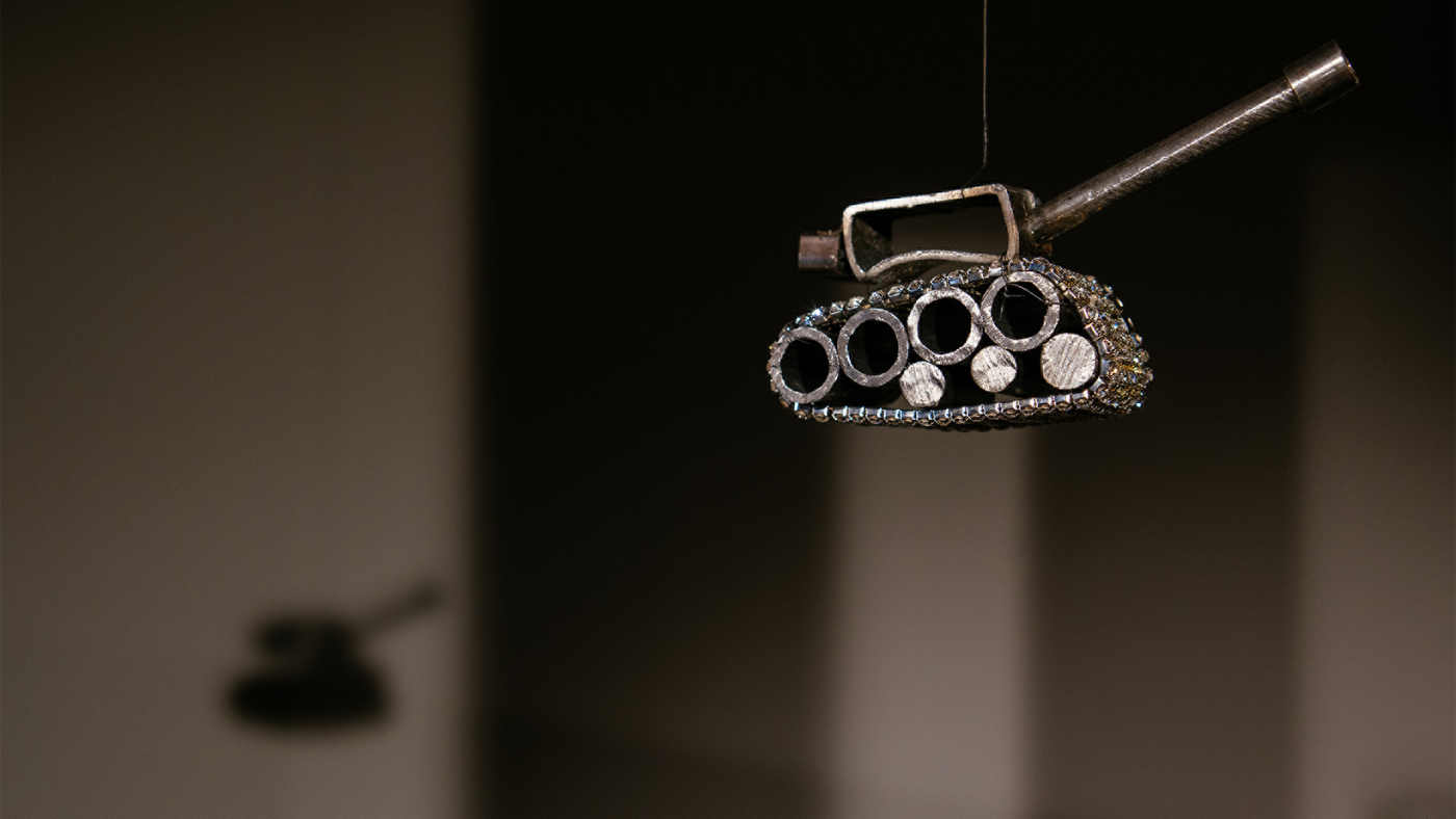 Photo in header: Fritz Bauer Forum | BUXUS STIFTUNG, photographer: Richard Lensit; photo of „The Visitor“ by artist Angela Schilling in the exhibition for the opening of the Fritz Bauer Library, August 2023; Feature image: photo of „Chainged“, also shown by artist Angela Schilling at the opening of the Fritz Bauer Forum.