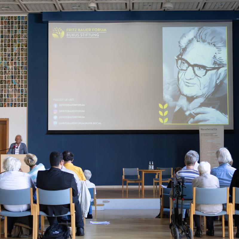 In mid-July, the last date of the seminar „Resistance for Human Rights – The Interactive Fritz Bauer Library“ took place at Witten/Herdecke University, which was offered as part of the Studium fundamentale programme. Over the summer semester, students worked on the question under the guidance of Magdalena Köhler: What does it actually mean to resist human rights violations – what forms of resistance are there and what are human rights anyway? And what role did Fritz Bauer play? Selected examples were used to shed light on resistance under the Nazi regime, but current cases of human rights fighters were also discussed. Irmtrud Wojak was a guest on one of the dates and gave the students fascinating insights into Fritz Bauer’s life and his commitment to human rights. The seminar resulted in some great contributions for the interactive Fritz Bauer Library, which will be published in the near future.